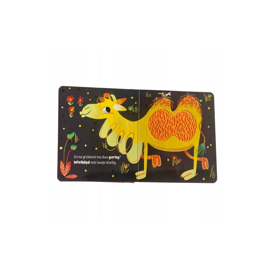Różne kolory i faktury zapewniają niezapomniane wrażenia sensoryczne. Przedstawia wesołe zwierzątka mieszkające na całym świecie, a sympatyczne ilustracje i proste zagadki angażują do zabawy. Urocza książeczka dla CIEKAWYCH ŚWIATA malców. Dzięki wypukłym formom o różnych fakturach dziecko może POGŁASKAĆ wiejskie zwierzątka. Z pewnością chętnie sprawdzi, jakie w dotyku są piórka papużki czy sierść wielbłąda.