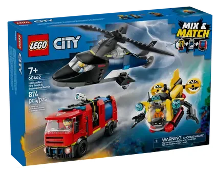 LEGO City Zestaw z helikopterem, wozem strażackim i łodzią podwodną 60462, LEGO