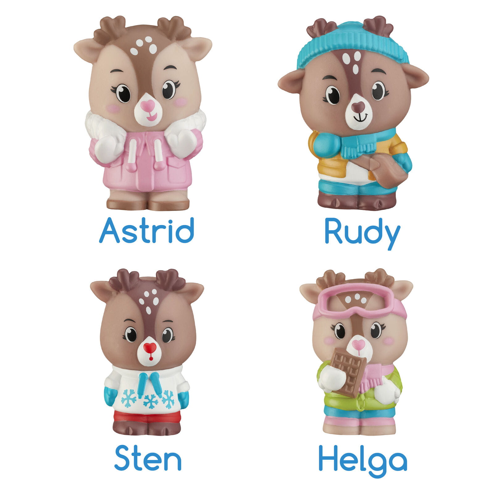 - Renifery mają wyraziste kolory z detalami, ubrane ciepło, na zimowe zabawy.