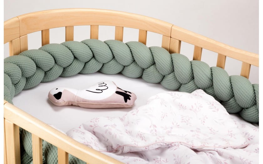 Warkocz ochronny wykonany z antyalergicznych, miękkich i sprężystych materiałów najwyższej jakości umożliwi niemowlakowi bezpieczne poruszanie się wewnątrz łóżeczka, chroniąc przed uderzeniami.