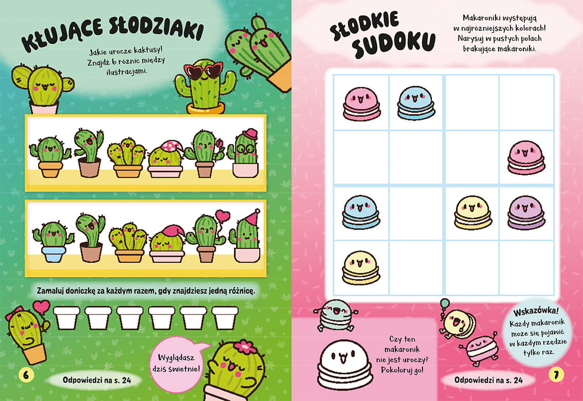 Przyjaciele kawaii to książeczka edukacyjna z serii Słodziaki, stworzona dla dzieci w wieku przedszkolnym. Zawiera różnorodne zabawy edukacyjne, które wspierają rozwój dziecka, a także wypukłe naklejki kawaii oraz wypychanki do kreatywnej aktywności.