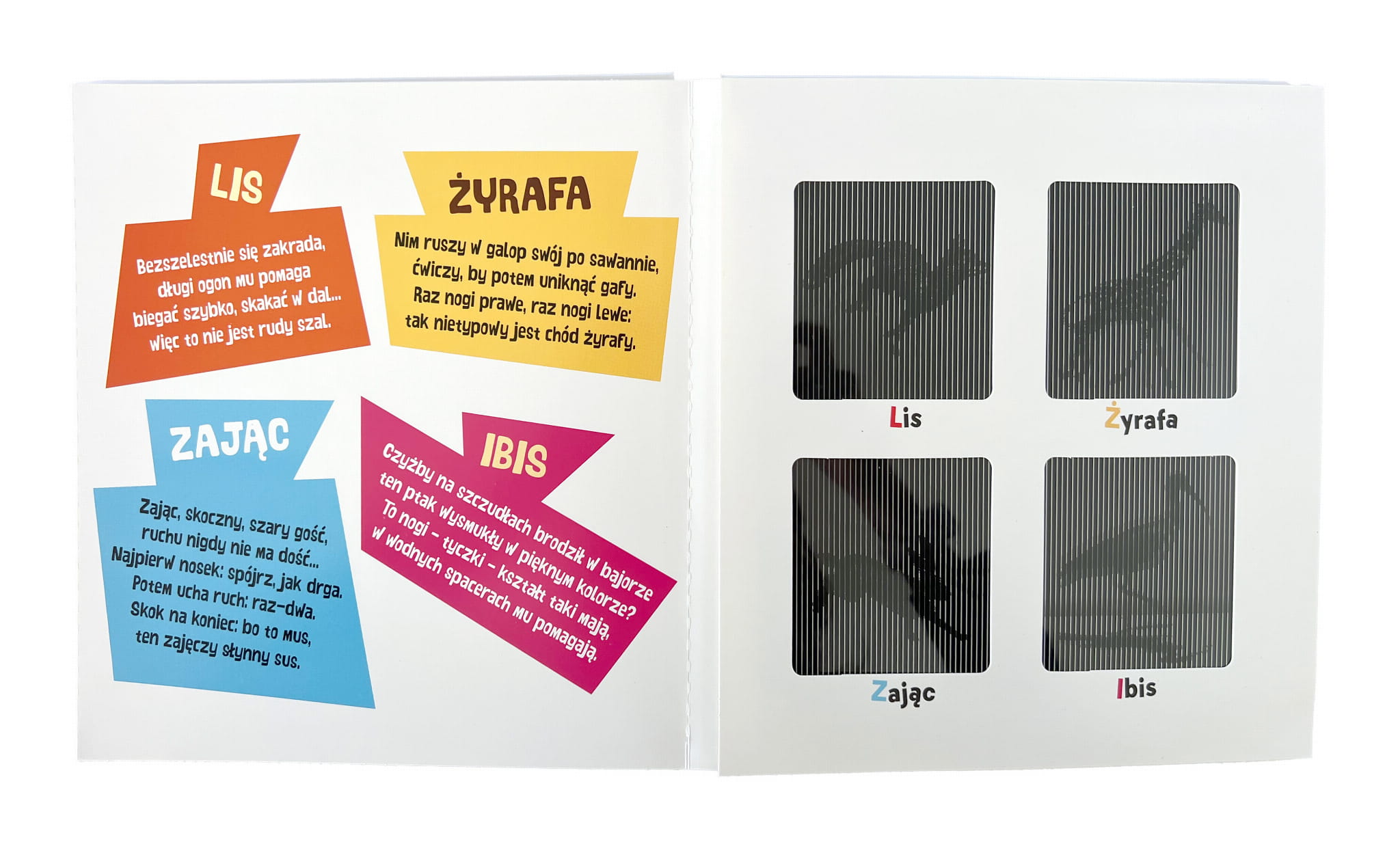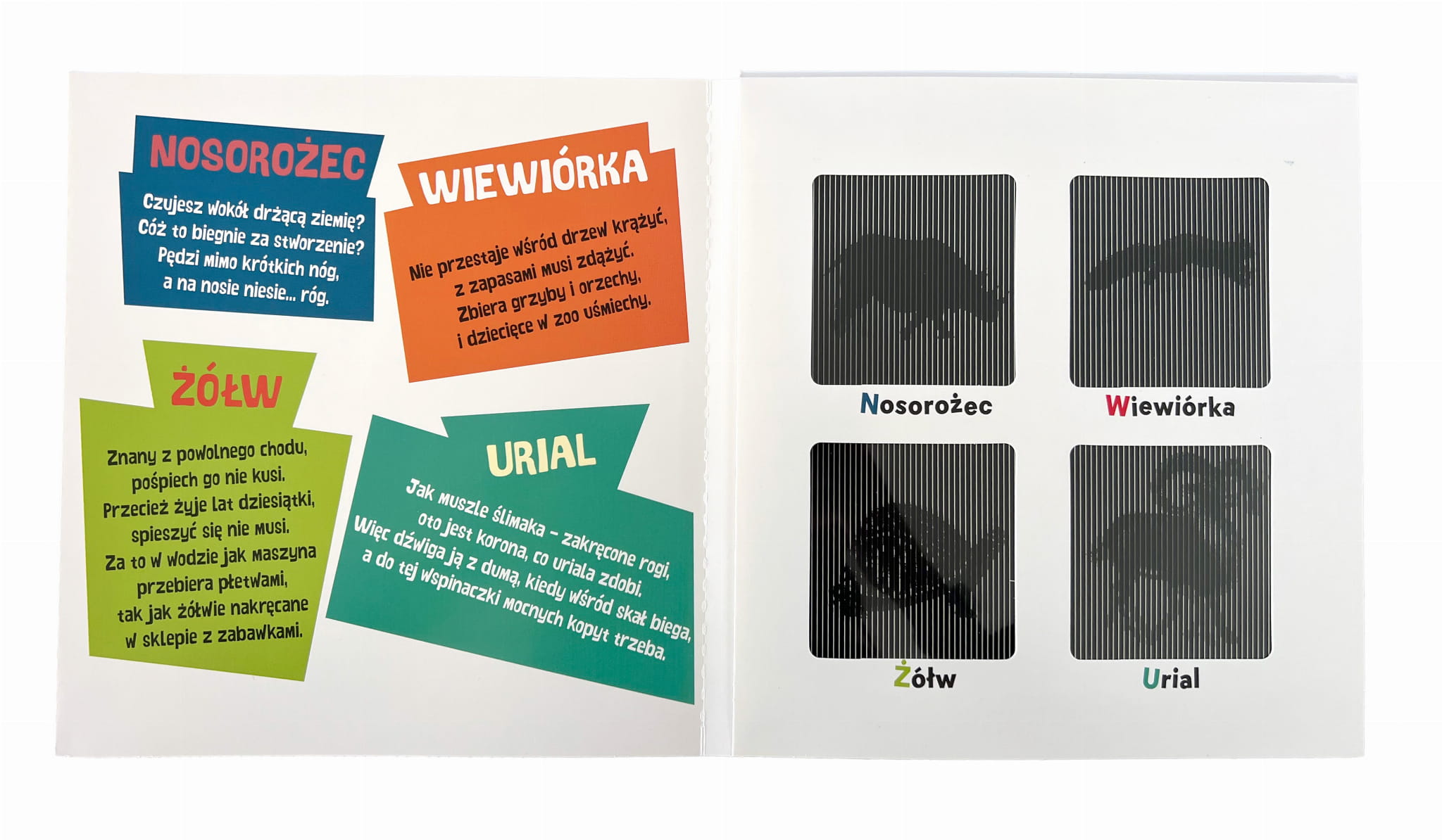 Książka z animacjami 3D Zoo! przenosi dzieci w fascynujący świat zwierząt żyjących w zoo. Dzięki innowacyjnej technice animacji wszystkie zwierzęta ożywają na kartach książki – można poruszać wielbłądem, zającem, nosorożcem i innymi mieszkańcami zoo za dotknięciem kartki. Każde zwierzątko towarzyszy dowcipny wierszyk, który rozwija poczucie humoru i wzbogaca słownictwo. Publikacja wspiera rozwój kreatywności, trenuje koncentrację i kształtuje poczucie estetyki, zapewniając przy tym świetną zabawę.